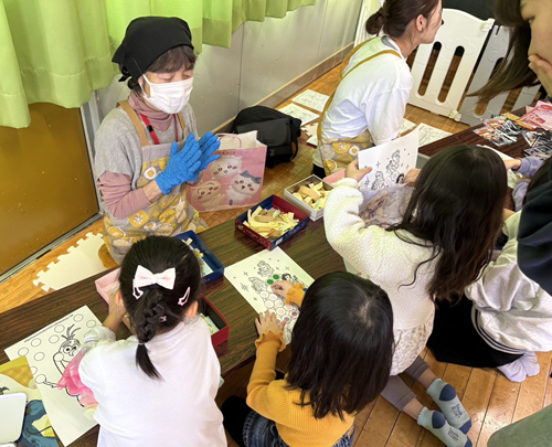 2月22日(日)は、なかよし児童館で、カレーライスやお菓子等が提供され、スタッフも含めて154名と多くの方が集まりました。